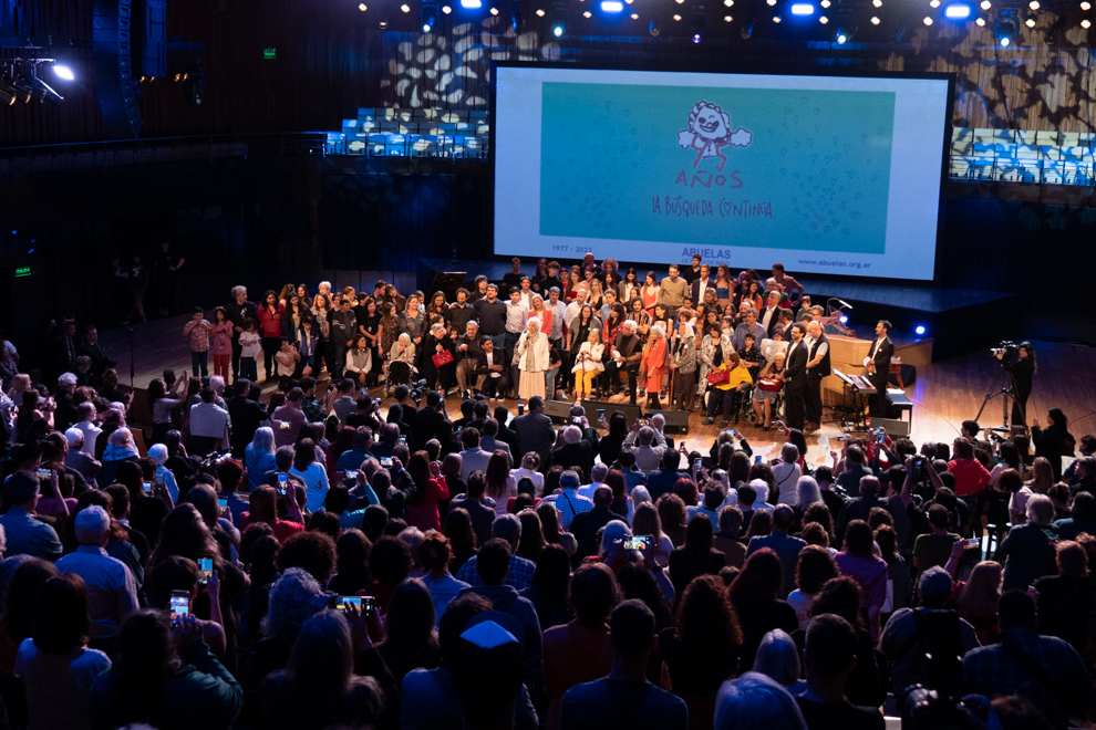 El cierre estuvo a cargo de Estela de Carlotto quien agradeció el apoyo de todos e hizo un especial reconocimiento a la Democracia, que permitió encontrar a los nietos y poder seguir buscando a los que faltan aún por encontrar.