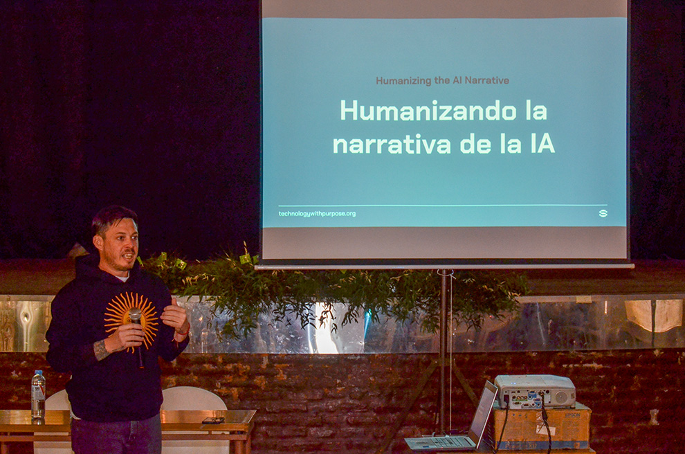A través del taller, Francisco Muzzio de la Fundación Tecnología con Propósitos, repasó con las y los jóvenes nociones básicas de Inteligencia Artificial e intercambió sobre los riesgos, sesgos y desafíos que plantea esta tecnología ya que la IA no es neutral. Sus resultados dependen de los datos con los que fue entrenada y de las decisiones de los humanos que la programan. Por lo cual, Muzzio señaló algunos factores a tener en cuenta para disminuir los sesgos en esta tecnología.