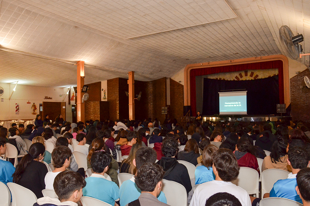 Durante la mañana 250 estudiantes de los IPEM Juana Manuela Gorriti y Malvinas Argentinas, del IPETYM René Favaloro, de las Escuelas PROA Experimental y Agro, y de distintos CENMA de la zona, participaron del taller para conocimiento y uso apropiado de una de las tecnologías más influyentes y presentes de nuestro tiempo: la IA.