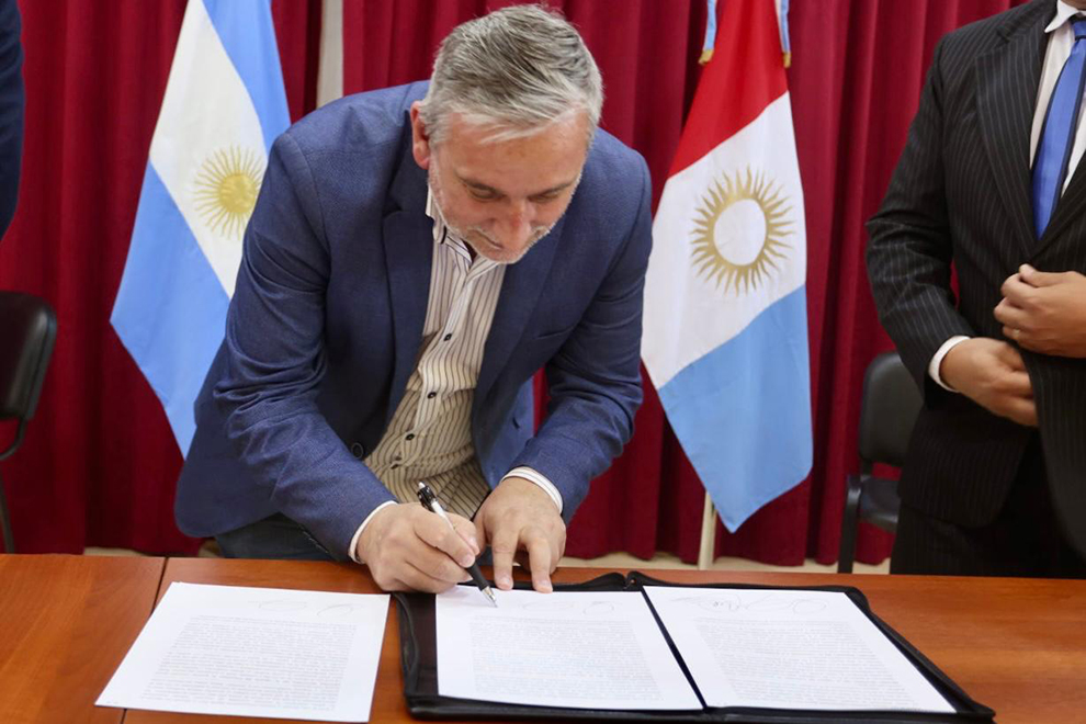 La firma del convenio fue suscrita por la directora de Trabajo, Producción y Comercialización Penitenciaria Roxana Allende, el director principal del Complejo Carcelario N°2 de Cruz del Eje Ricardo Romero, y el intendente Renato Raschetti.